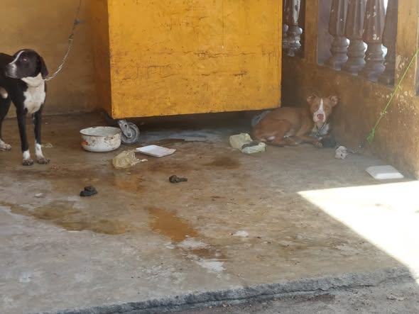 Se ha reportado una perrita muy delgada, amarrada y en condiciones preocupantes en la colonia Zozayita en Gpe. También se menciona que el perrito negro que aparece en la foto con ella ha fallecido, y los vecinos comentan que esto ocurrió hace aproximadamente tres días. Si alguien está cerca o sabe dónde puedo reportar esta situación, por favor háganmelo saber.