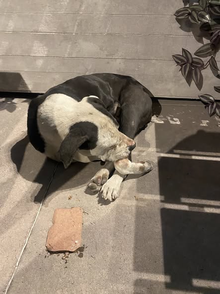 Se ha avistado un perro en condiciones preocupantes en la plaza Galerías. Le dejé comida, pero no la aceptó. Se encuentra en un estado delicado y no pude llevarlo conmigo. Lo dejé descansando en el café Punta del Cielo.