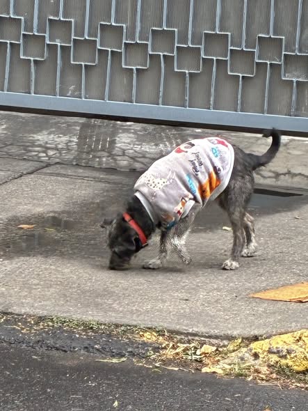 He visto un perrito en las calles de Bremen y Albert. Lleva un suéter y un collar rojo, pero no tiene placa. No se deja agarrar, así que si alguien lo reconoce, por favor háganmelo saber.