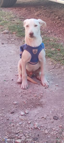 Hoy se ha visto a un hermoso perro en el tianguis de Brisas. Parece estar asustado y no se deja tocar. Tiene una pecherita de color azul, lo que sugiere que podría tener un hogar. Es posible que su familia lo esté buscando.