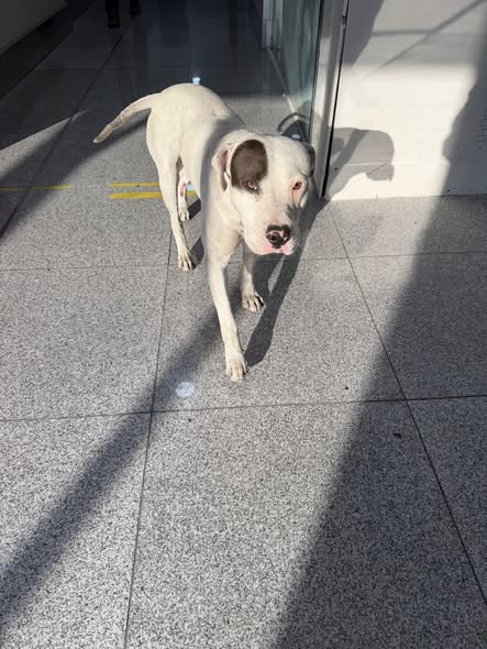 ¡Hola a todos! Hoy, miércoles 8 de abril, a las 7:30 a.m., encontré un perrito en el aeropuerto de la CDMX (AICM), terminal 1. Parece un pitbull y creo que está perdido o abandonado, ya que se encuentra en el área de autobuses, se aleja y regresa repetidamente. Me comentaron que lleva varios días allí y no saben de quién es, parece que lo dejaron solo. Me encantaría ayudarlo mientras encuentra a su dueño o un nuevo hogar, pero no soy de aquí, vivo en Puebla, por lo que no puedo llevármelo. Adjunto fotos; espero que alguien pueda venir por él. He estado jugando con él y es muy cariñoso, no es agresivo y le encanta que lo acaricien. 🥰 ¡Gracias por su atención!