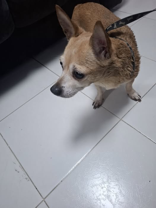 Se busca a los dueños de esta perrita que se encuentra perdida en Hojalatería y Herreros.