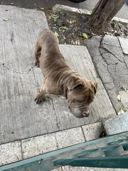 Este perrito se encuentra afuera de mi casa en la colonia Jardín Balbuena, en retorno 17 de Jesús Galindo y Villa. Está lastimado de la nariz y sigue aquí. Esperamos que su dueño aparezca pronto. Ya le hemos dado comida y agua.