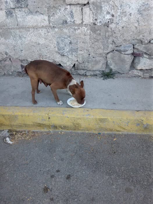 Esta cachorra parece estar perdida en el barrio de San Juan. Parece que está lactando o tiene a sus cachorros cerca. Si alguien la está buscando, por favor, comuníquese.
