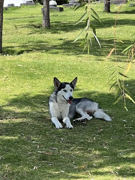 Hola, hace un momento se acercó a mí un perrito de raza husky en el parque de las niñas y los niños en Zapopan. No lleva correa ni placa, y no pude determinar si es macho o hembra. Tiene ojos blancos. Pregunté a las personas en el parque, pero nadie sabía a quién pertenece. Yo iba de paso, pero se quedó cerca de la fuente, bajo un arbolito 🌳. Espero que pueda encontrar a sus dueños. ✨
