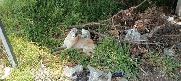 Hola, ¿podrían ayudarme? Esta perrita fue atropellada en Calzada del Pacífico, a la altura de Santa Cruz Cuauhtenco. Lleva collar y es bastante dócil. Tiene una patita lastimada.