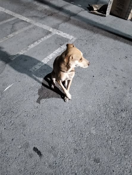 Buenos días, hemos avistado a una perrita que parece ser hembra. Tiene un pequeño tic y lleva un collar sin placa. Esperamos que sea de alguien. Está entrando a García, cerca de la Benavides.