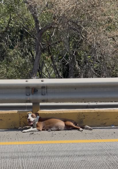Se reportó a esta perrita desde las 8 de la mañana, se encontraba sobre el Ejército Mexicano. Al parecer, ha sido atropellada. La vi y no pude dejarla ahí, parece que está embarazada. La estoy llevando a la veterinaria, ya que parece tener una patita fracturada. No creo que tenga dueños.