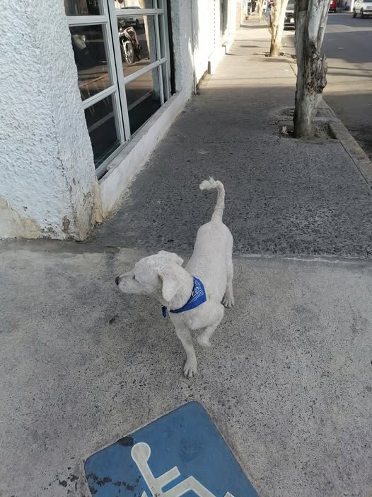 ¡Hola! Buen día. Con el permiso de la administración, quiero compartir que encontré un perrito caminando en Valle de Bravo, en la calle 7, con dirección hacia la Av. Cuauhtémoc. El perrito es de color blanco, de tamaño entre chico y mediano, se veía limpio, tiene el pelo corto y lleva un collar de cuero con un paliacate azul.