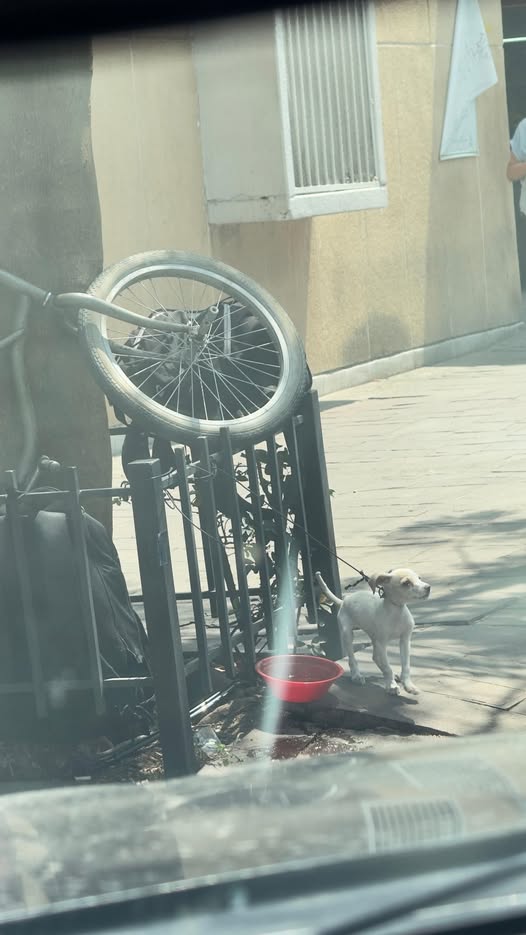 Hoy, mientras realizaba un trámite en el Mercado Mexicaltzingo en Guadalajara, observé a un hombre que cuida los vehículos en los alrededores. Este hombre tiene a un cachorro amarrado con un cable a una estructura metálica. El cable es tan corto que el perrito no puede acceder al agua. Necesitamos apoyo para rescatarlo, ya que el cachorro se ve muy delgado. La ubicación es el Mercado Mexicaltzingo, en la entrada del hotel 'Casa Xalisco', en la calle Nicolás Regules.